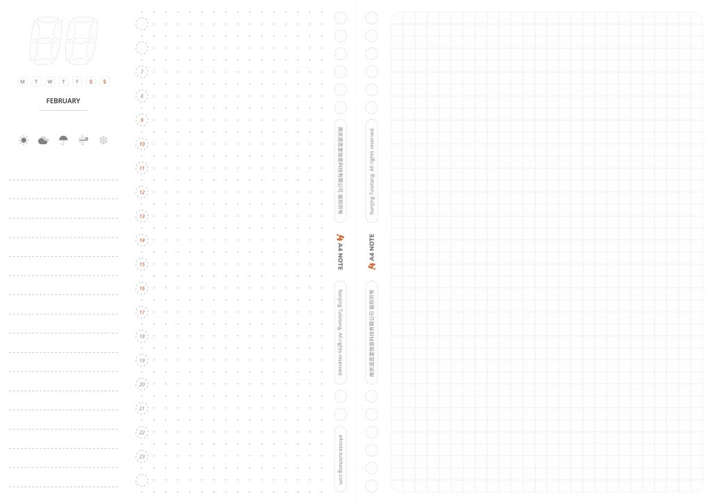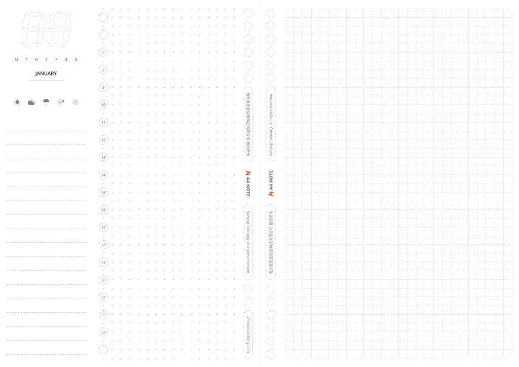 A5版本的 一日一记已合拼合成A4,可以直接用A4纸打印,支持正反面打印。内含 1月至12月的版本,打印时请注意选择正确的月份。(正反面打印时请注意反面输纸方向)
